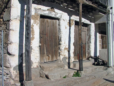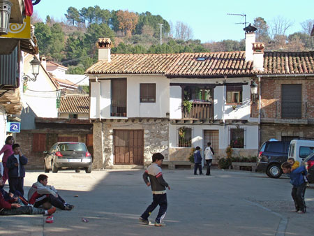 Continuando nuestra excursión, tenemos la oportunidad de contemplar su bella arquitectura popular de estrechas callejuelas y casas antiguas de adobe, piedra y madera, cubiertas con teja árabe. Miramos hacia los balcones y en lugar de macetas repletas de plantas, en este mes de diciembre de 2005 nos llama la atención, una infinidad de carteles que, colocados prácticamente en todos los hogares, insistentemente demandan “UN CENTRO PARA LOS MAYORES DE EL HORNILLO ¡YA!” .