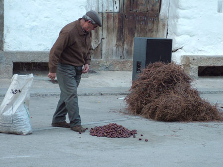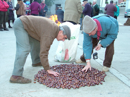 Y es que según nos detallan varios vecinos, el Ayuntamiento cedió a los mayores de la localidad un espacio en las Escuelas Viejas, que no puede ser utilizado dado su estado de ruina general. Dirigiéndonos hacia la Plaza Mayor, un señor jubilado que pasea con su bastón, muy amablemente nos invita a permanecer en este lugar por ser el día en el que la Asociación de Mayores de la Villa, festejan la tradicional “moragá“, o lo que es lo mismo, la celebración de la fiesta de las castañas asadas, a la que están invitados todos los vecinos y visitantes de El Hornillo que quieran participar.