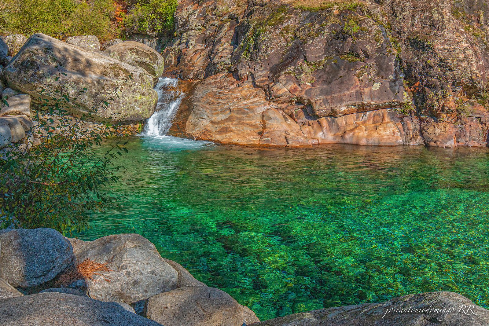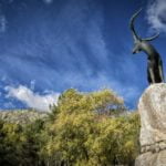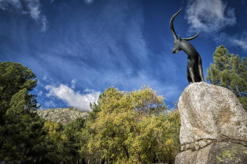 Pero, es que además de sus calles, de sus blancas casas, de sus recoletos rincones, Guisando comparte el extraordinario panorama que le ofrece los “Galayos” y ” Pico de la Mira”, emplazamientos idílicos para realizar bellas excursiones de montaña, desde la Plataforma del Nogal del Barranco. En nuestro deambular vamos disfrutando de las vistas de hermosos manantiales, fuentes, arroyos, del Río Pelayos, del Río Cuevas, y de todas sus charcas de aguas cristalinas que reflejan un fondo de color verde esmeralda, que plácidamente contrasta con las tonalidades rojas, pardas y amarillas de las hojas de los árboles en esta fascinante estación otoñal. Hacemos una parada obligada después de un intenso caminar, y para reponer fuerzas degustamos un suculento plato de judías blancas con chorizo excelentemente preparadas en El Fogón de Gredos, uno de los buenos restaurantes de Guisando, villa que dispone también de una amplia infraestructura para el turismo rural y de montaña, con casas rurales, hostales, restaurantes, bares, kioscos y merenderos.