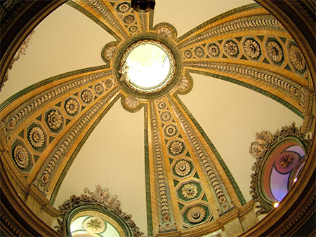 El techo es una gran cúpula, con muchísima luz por la linterna a lo alto y por las ventanas redondas que hay en la base.