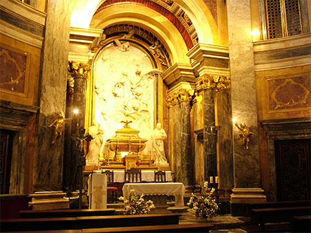 Interior de la Capilla Real. Al entrar uno queda deslumbrado por los mármoles, los dorados y la luz.