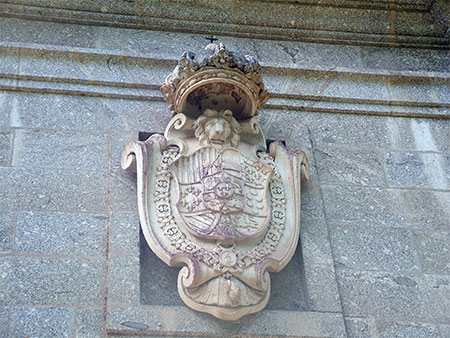 En el exterior llama poderosamente la atención un enorme escudo de piedra de Carlos III.