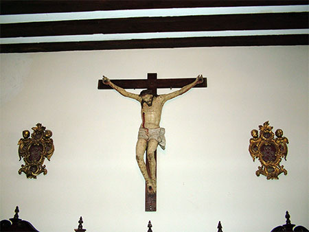 En la sacristía podemos ver este Cristo del siglo XV, muy bien conservado, modelado en pasta de maíz por los aztecas de México y procedente muy probablemente de estado mexicano de Michoacán.