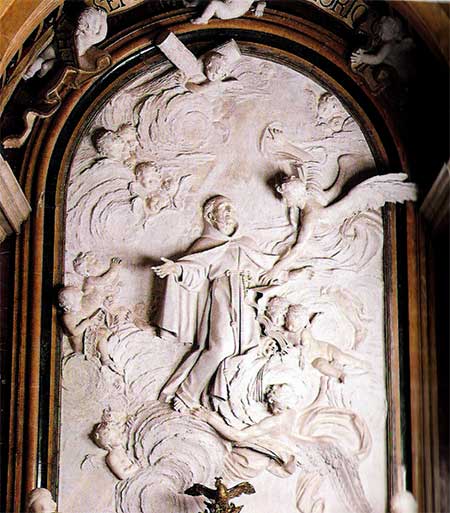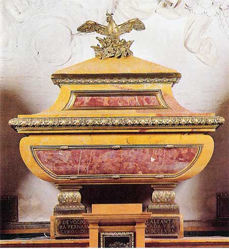 Delante del relieve, la urna con los restos de San Pedro de Alcántara, obra de Ventura Rodríguez